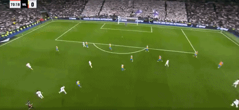 第44分钟,巴尔韦德助攻,贝林厄姆兜射入死角,皇马3-0